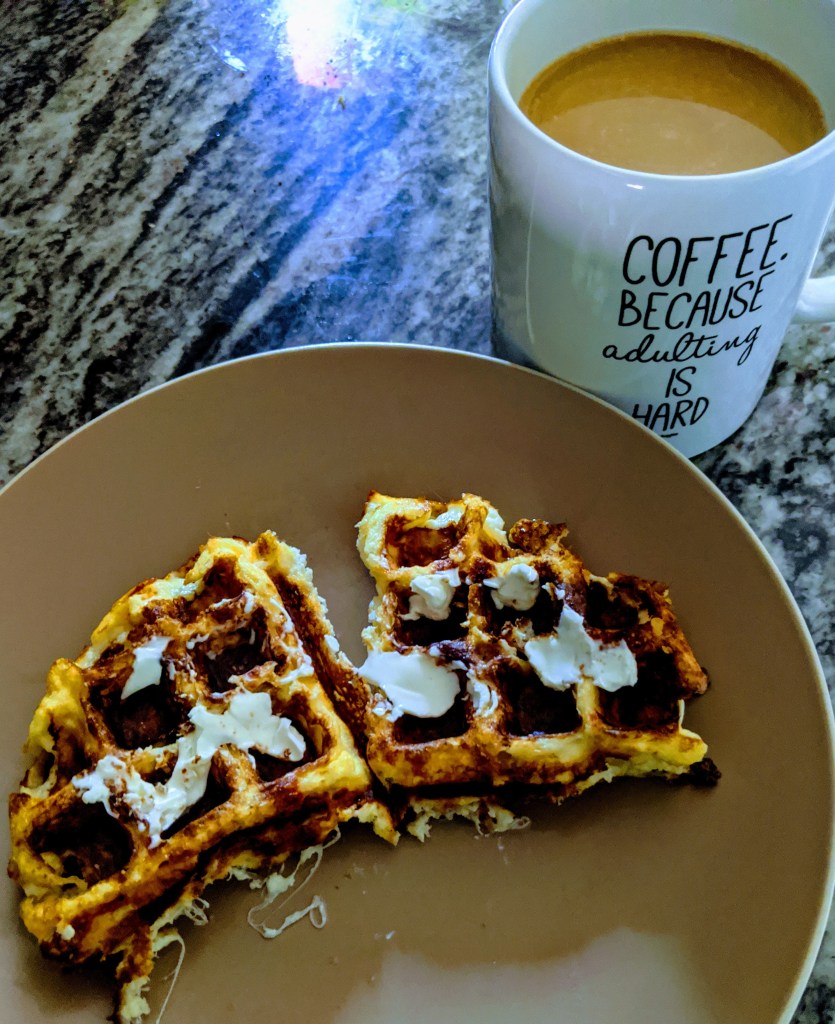 Spread a little cream cheese on top. So good and 1/2 the waffle about 2.5 net carbs! So good and toddler approved!